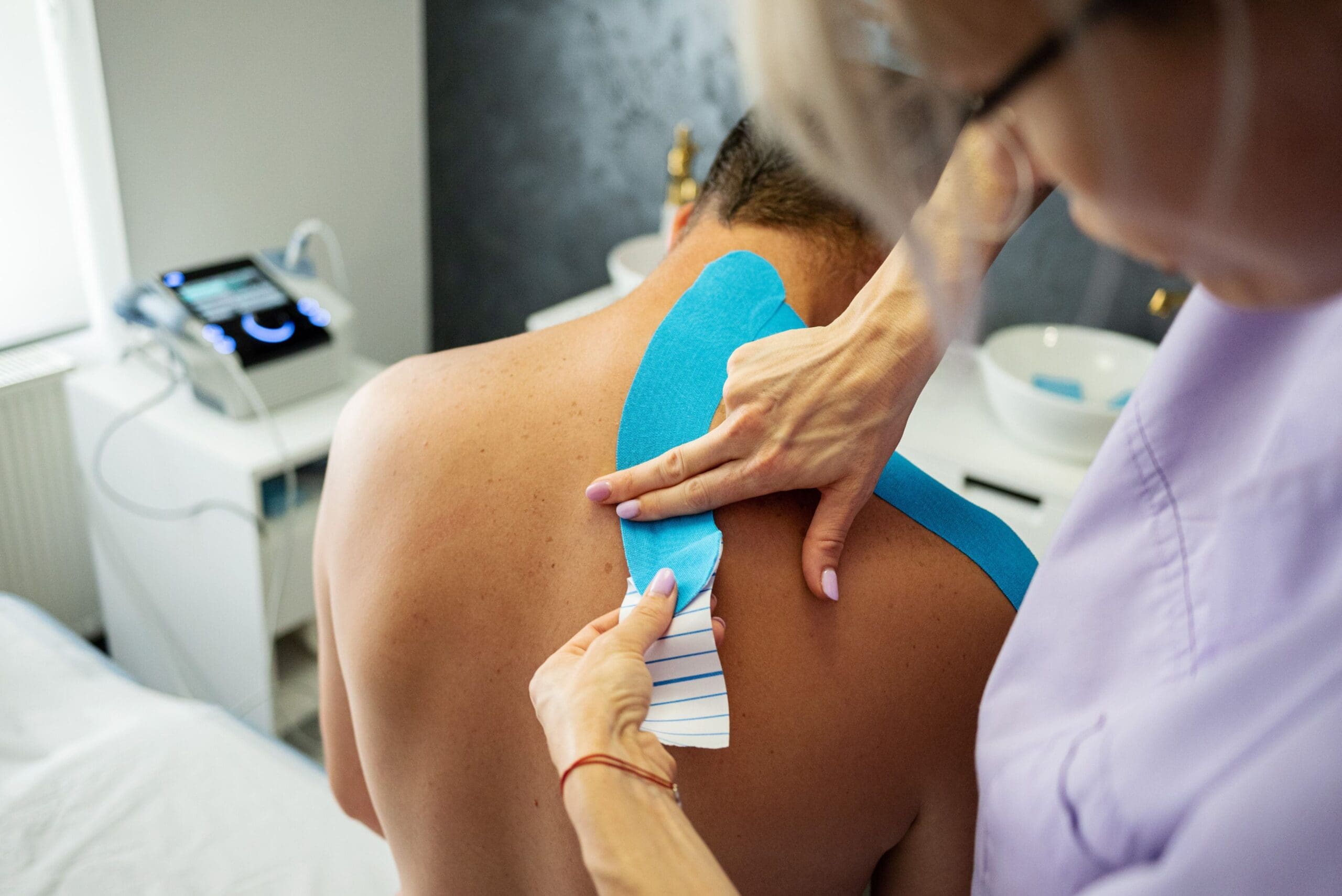 Kinesio Taping is a therapeutic technique that uses a special elastic tape applied to the skin to support muscles and joints without restricting movement. Developed by Dr. Kenzo Kase, this tape mimics the skin’s elasticity, allowing for a full range of motion while providing support.The tape can be worn for several days, including during exercise and showering. It’s often used alongside other physical therapy treatments to promote healing and improve function.